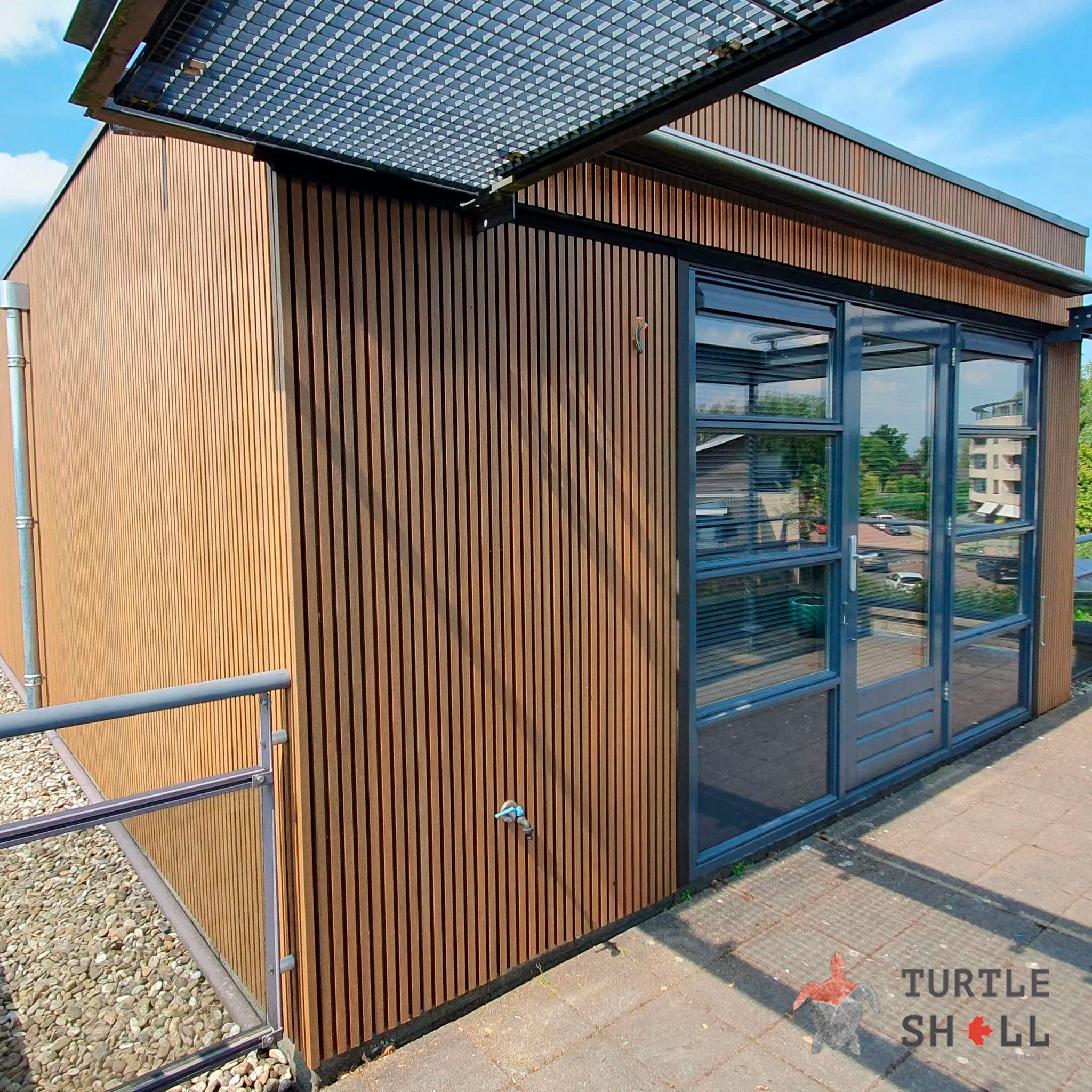 Реечные фасадные и стеновые панели - это не только стильное решение для вашего дома, но и практичное. Облицовочная стеновая панель Turtle Shell обладает высокой стойкостью к воздействию внешних факторов, что делает ее идеальным выбором для облицовки фасадов зданий любого типа.